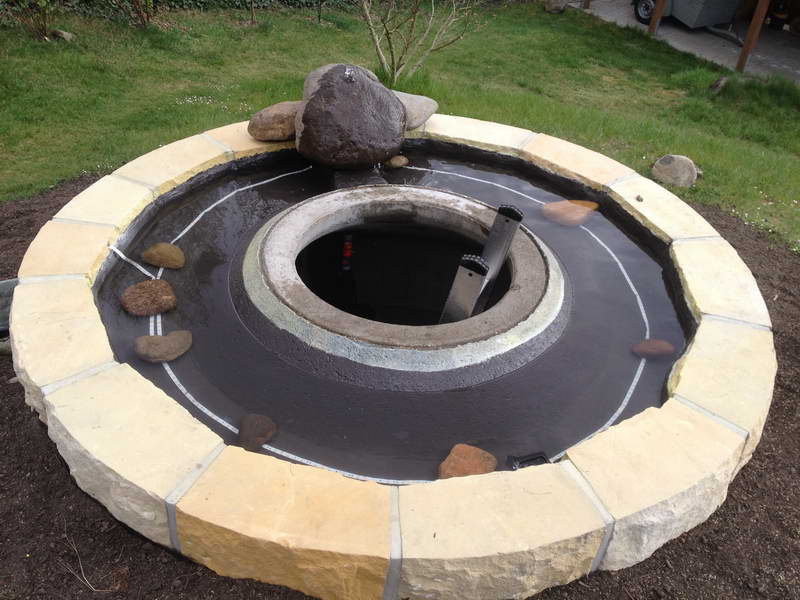 - Als Behälter für das gesammelte Regenwasser eignen sich sowohl Beton- als auch Kunststoffspeicher.